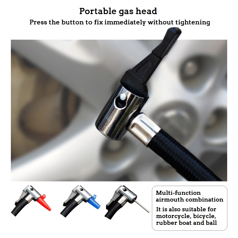 2. Put the inflatable nozzle on the tire that needs to fill the air.